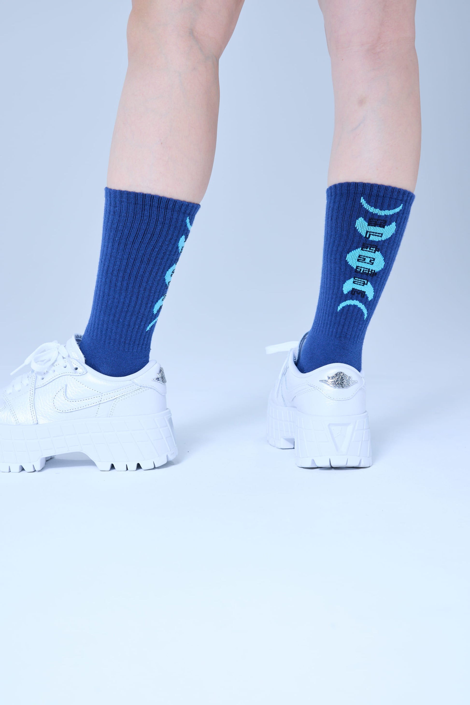 背面からさりげなく見えるデザインが特徴的なソックスです。